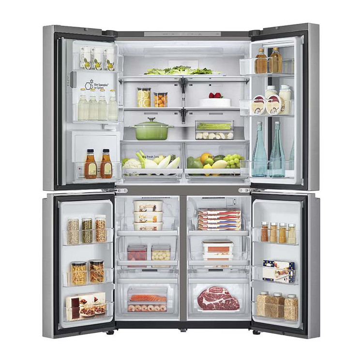 100% بدون برفک ,از نوع اینستا ویو با شیشه ضد ضربه و نشکن ,پشتیبانی از کنترل صدا ,دارای قابلیت Metal Fresh ,دارای قابلیت Smart ThinQ ,دارای قابلیت دور کولینگ Door Cooling ,دارای کشو ها تنظیم شونده برای میوه و یا سبزیجات ,مجهز به کمپرسور اینورتر خطی |
