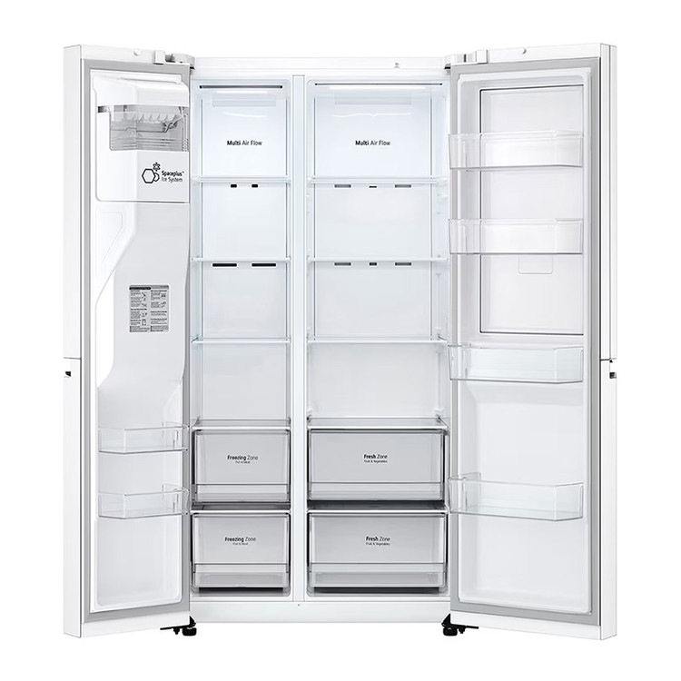 یخچال فریزر ساید بای ساید ال جی J267 رنگ سفید مدل GC-J267SQSS با ظرفیت 668 لیتری خود، انتخابی ایدهآل برای خانوادهها و افرادی است که به دنبال فضایی بزرگ برای نگهداری مواد غذایی هستند.